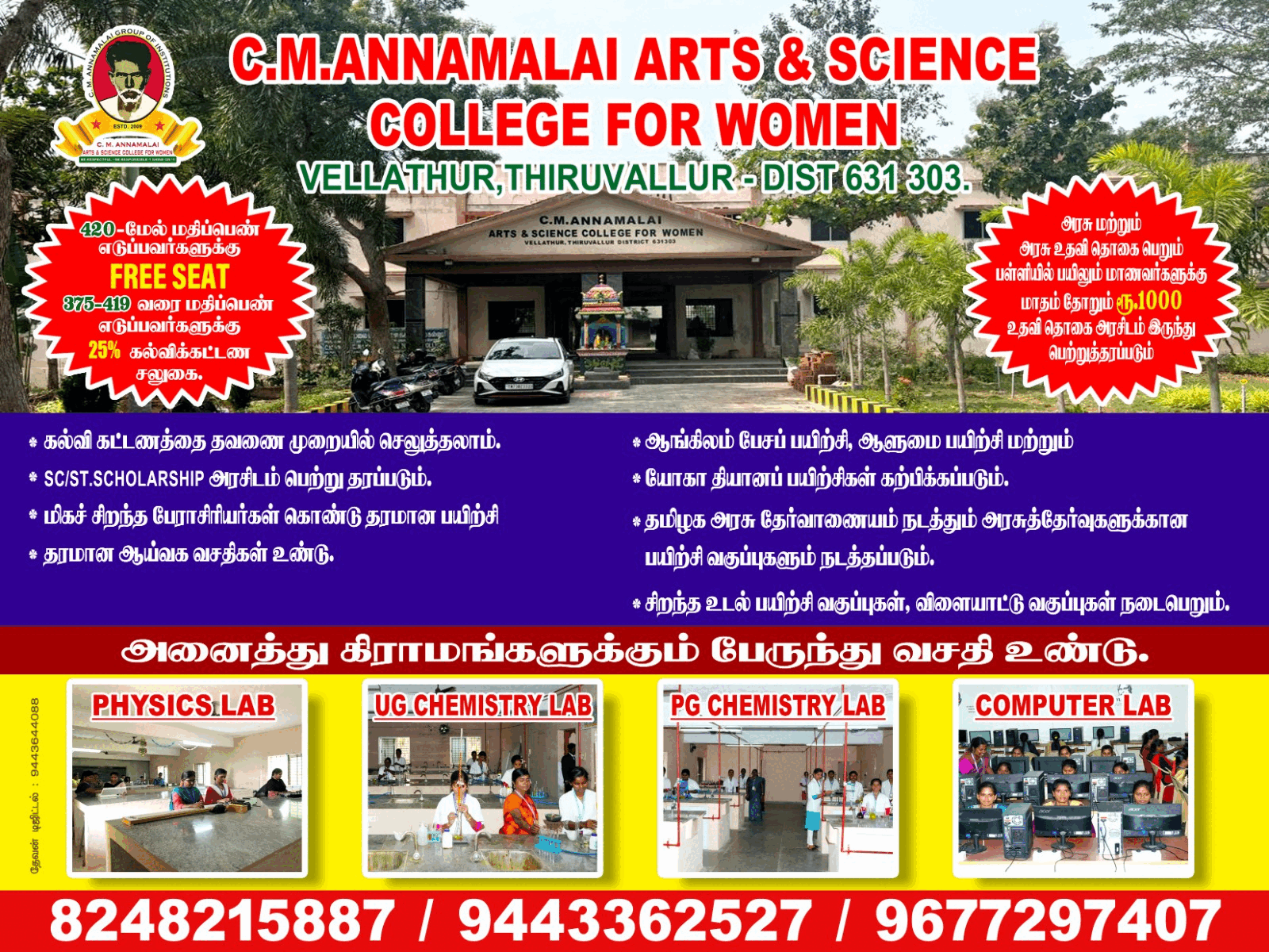 With its state-of-the-art facilities and student-friendly environment, C.M. Annamalai Arts & Science College for Women offers